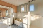L’espace nuit propose deux grandes chambres avec rangements (possibilité d’en créer une troisième facilement), une salle de bain avec douche et baignoire, ainsi qu’un WC séparé.