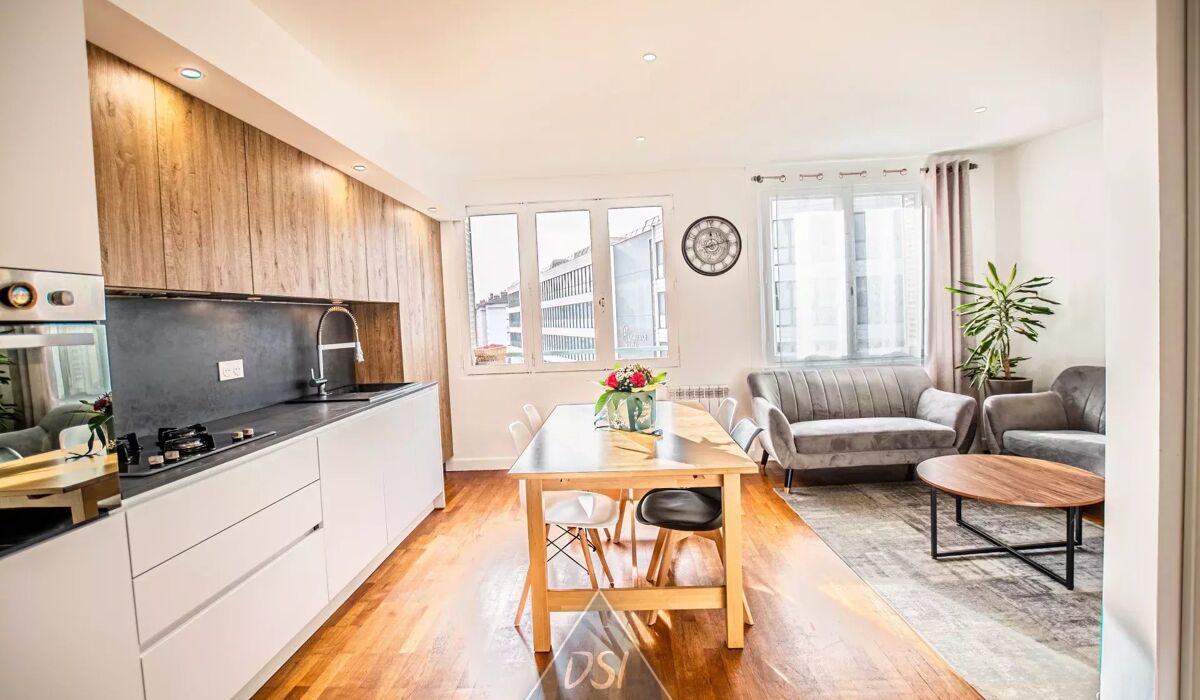 VILLEURBANNE SECTEUR FLACHET - Appartement de Type T4 de 65 m² habitable situé au 3ème étage avec ascenseur, entièrement rénové avec des matériaux de qualité. Composé d'une cuisine neuve équipée ouverte sur séjour lumineux, 3 chambres, une salle de douche et un WC séparé. Vous bénéficierez également d'une cave et d'un parking. VENEZ DÉCOUVRIR CE BIEN SANS TARDER / DOUBLE VITRAGE / TRAVERSANT. Consommation Indicative: D / Émission de gaz à effet de serre: B. PRIX 279 000€ www.dsi-immo.com Agence D.S.I. 04 78 80 32 40.