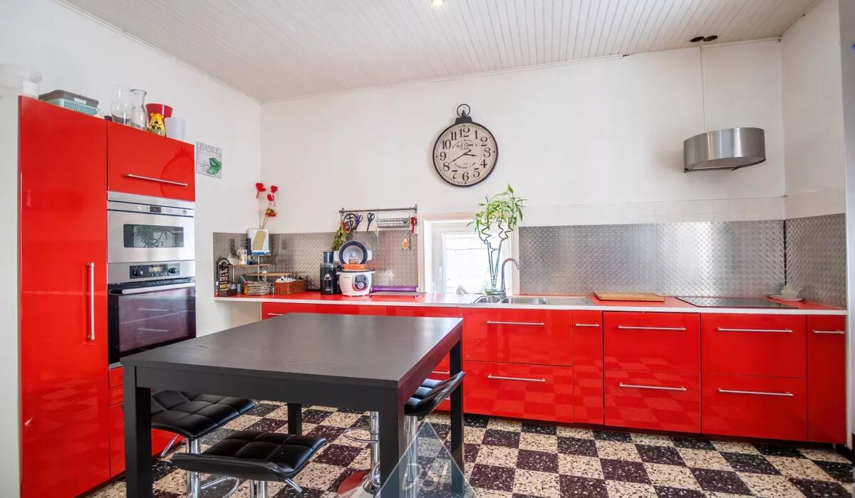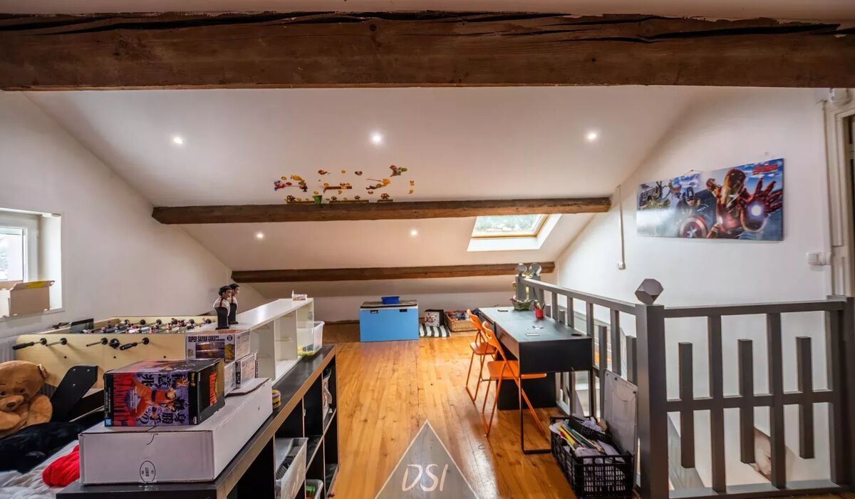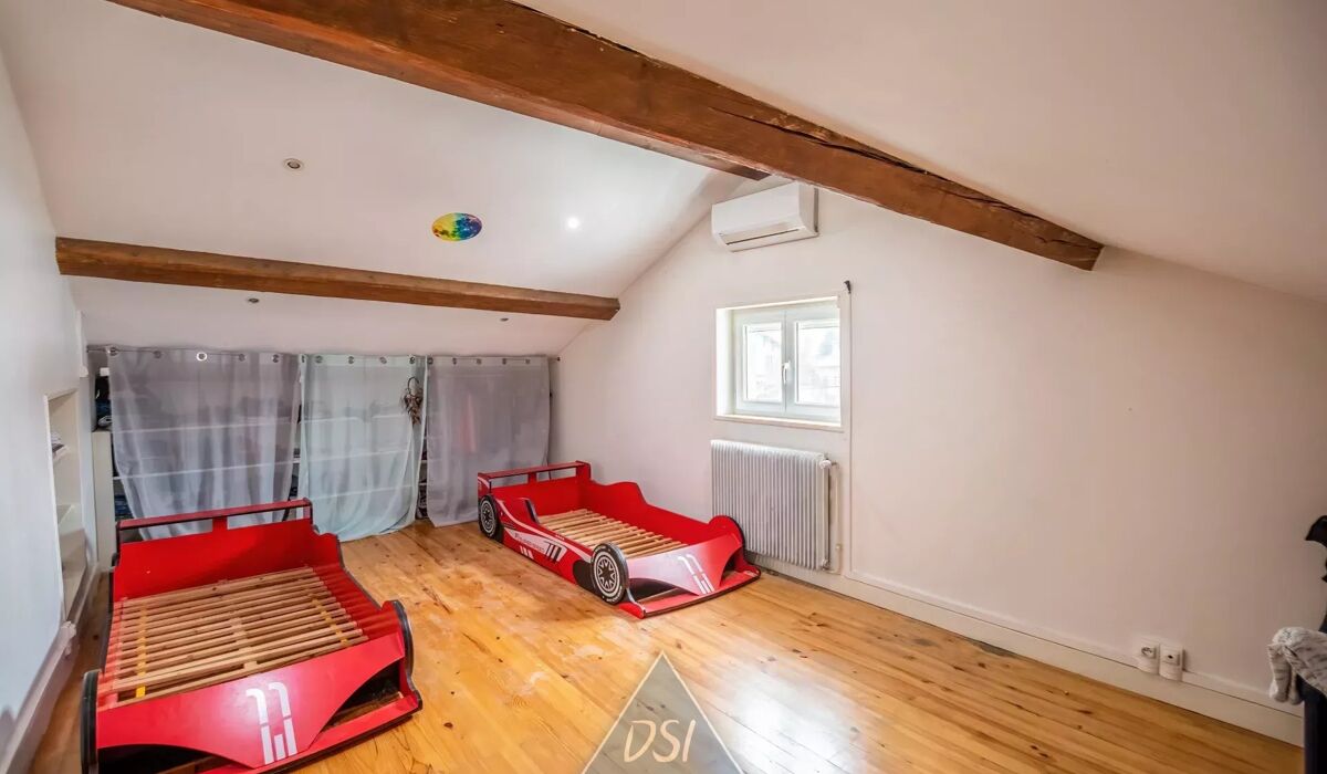 AU CŒUR DU VILLAGE DE THIL venez découvrir une maison de type T5 de 137 m² habitable + 82m² de surface aménagée sur TERRAIN CLOS de 326m². Composée au premier étage: d'une cuisine entièrement équipée de 17m² ouverte sur une magnifique pièce à vivre de 35 m² avec son poêle à bois, deux chambres, salle d'eau et WC.