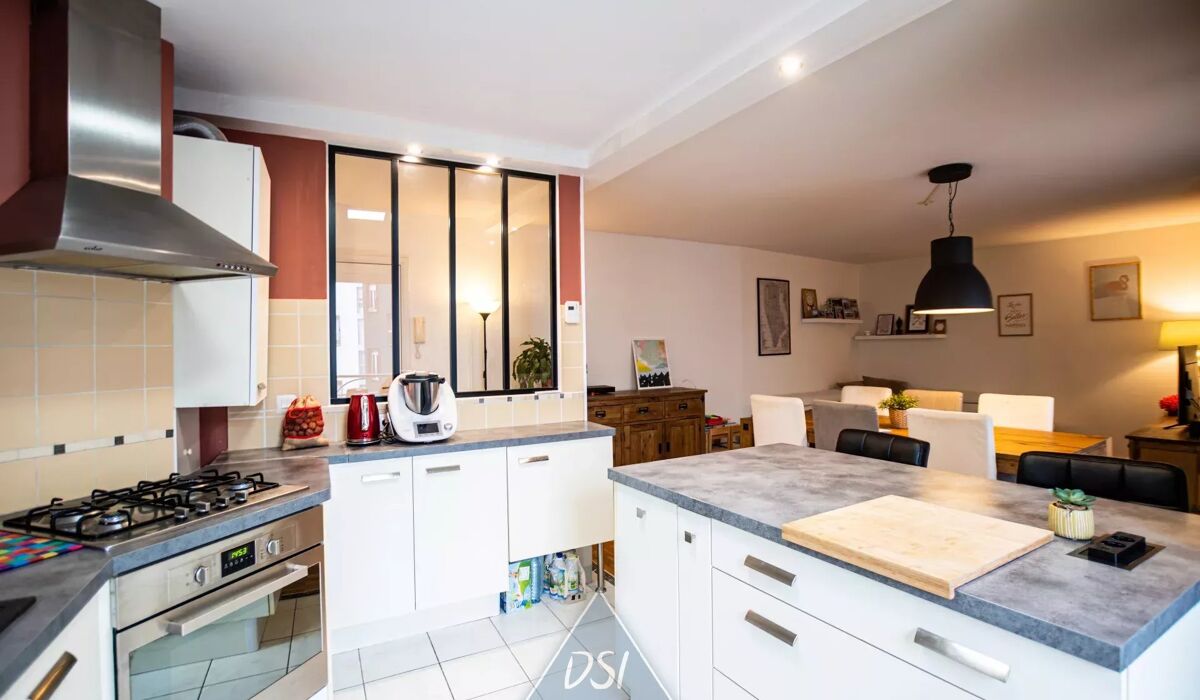Ce bel appartement bénéficie d'un vaste séjour, d'une cuisine de type US ouverte sur la pièce de vie, d'un espace nuit séparé avec deux chambres, d'une salle de bain et d'un WC séparé.