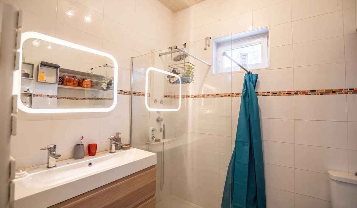 A l'étage: une grande chambre et une salle de jeux (avec la possibilité de la transformer en chambre supplémentaire). Un sous-sol aménagé de 82m² et une dépendance de 25m² complète ce bien.